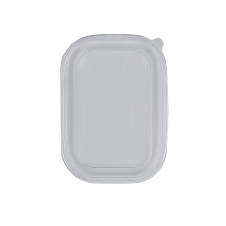 Clear PET lids for small, medium, and large rectangular Kraft deli bowls, which will keep your products fresh.